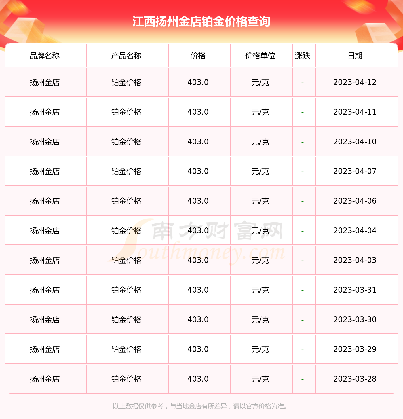 2023年4月11日重庆扬州金店铂金价格查询